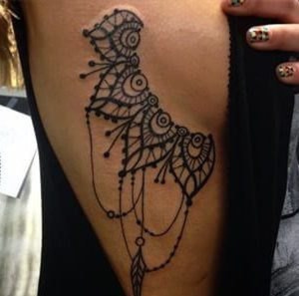 女性性感侧肋上漂亮的纹身图案