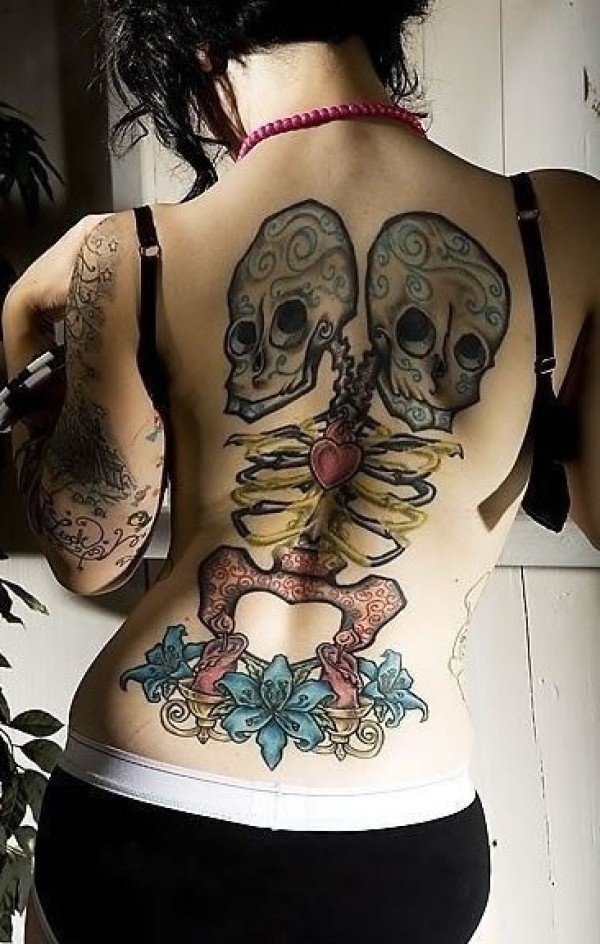 侧腰女骷髅刺青图案图片_骷髅纹身图案大全_纹身图吧