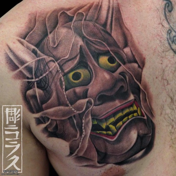 胸部般若纹身图案