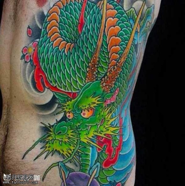 腰部绿龙纹身图案
