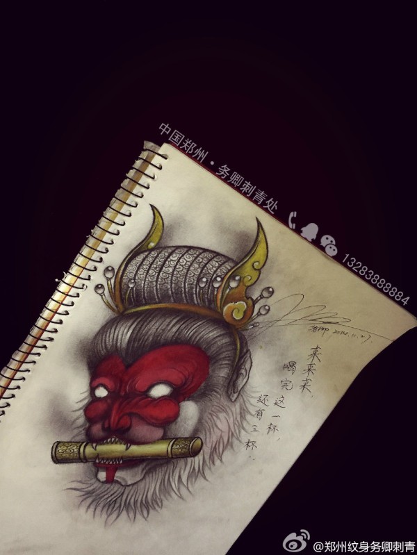 能面万媚纹身手稿_52张日式能剧面具纹身手稿图案素材欣赏