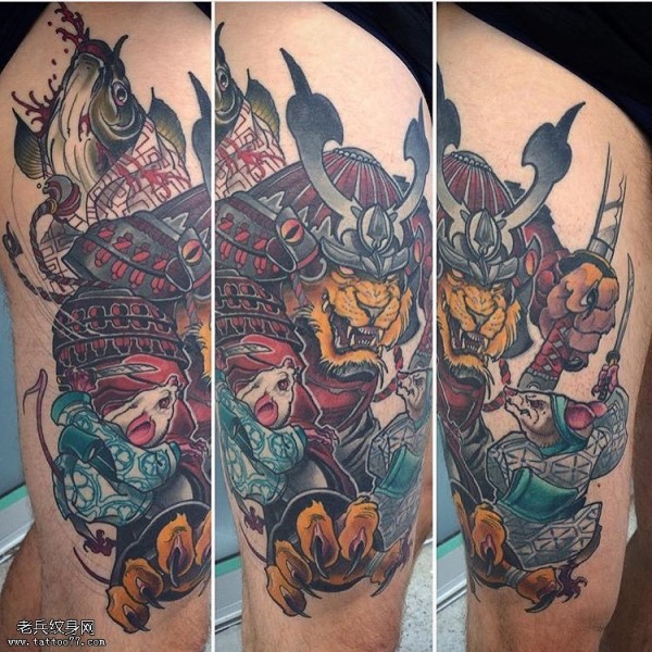 传统花腿纹身--18张传统风格的大花腿纹身图案作品