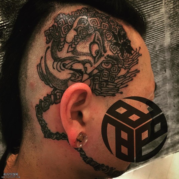 霸气男头部时尚纹身图片_头部纹身图案大全_纹身图吧