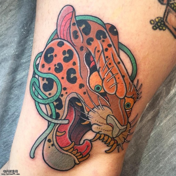 大腿豹子纹身图案