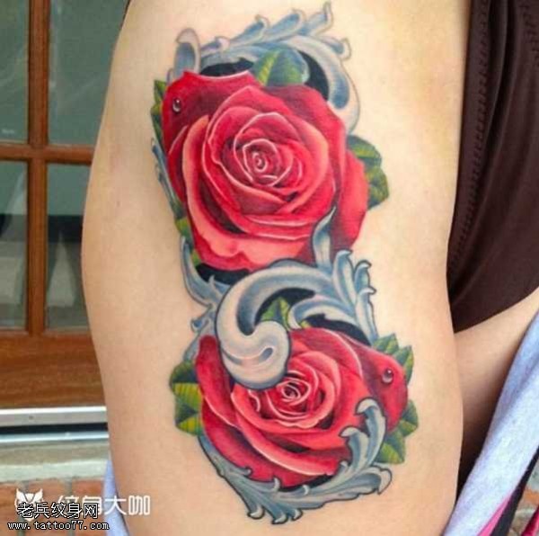 传统鲤鱼花小腿纹身_腿部纹身图案大全_纹身图吧