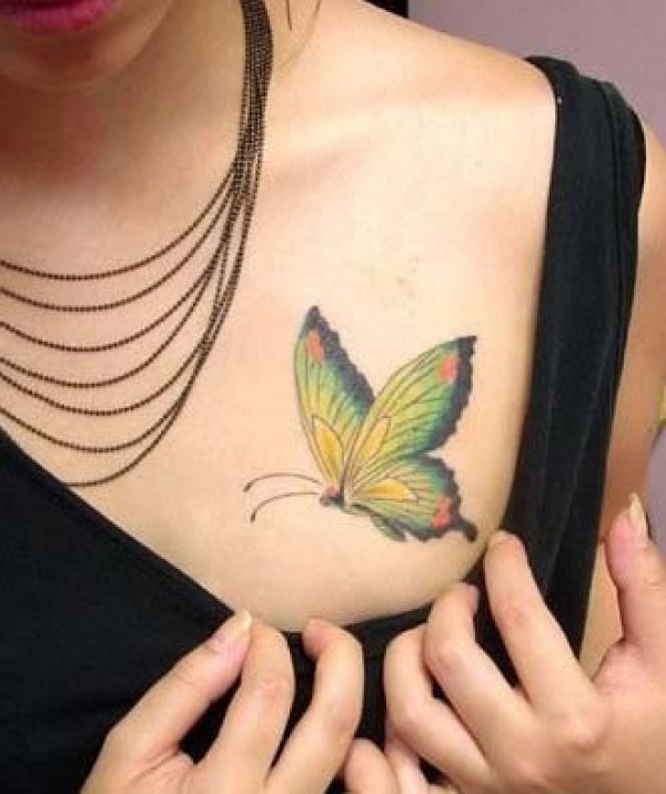 好看唯美的女性胸部蝴蝶纹身图案hudiewenshen