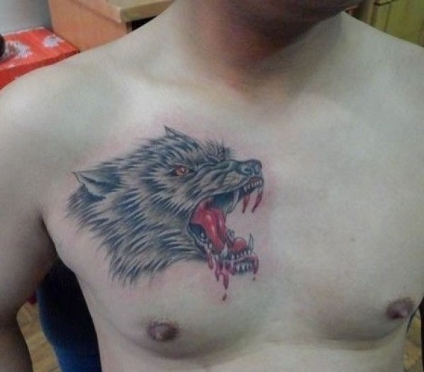 三张嚎叫的滴血狼头dixuelangtou刺青图