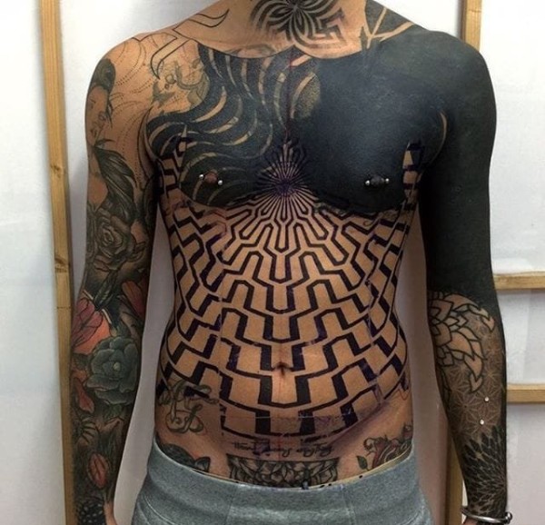 霸气的男性黑色几何纹身图案来自于纹身师马可