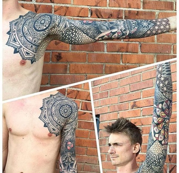 霸气的男性黑色几何纹身图案来自于纹身师马可