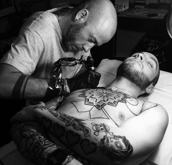 霸气的男性黑色几何纹身图案来自于纹身师马可