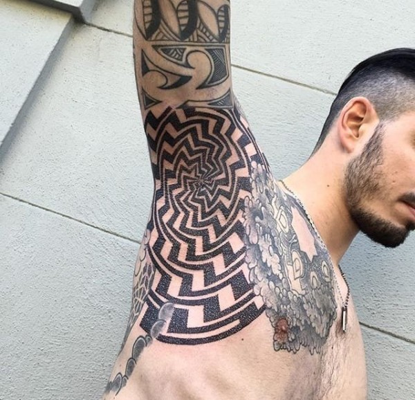 霸气的男性黑色几何纹身图案来自于纹身师马可