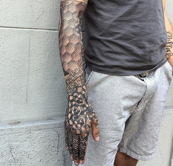 霸气的男性黑色几何纹身图案来自于纹身师马可