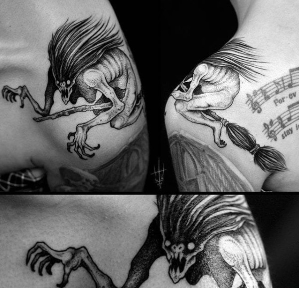 令人毛骨悚然的黑色生物和魔鬼纹身图案来自纹身师谢尔盖