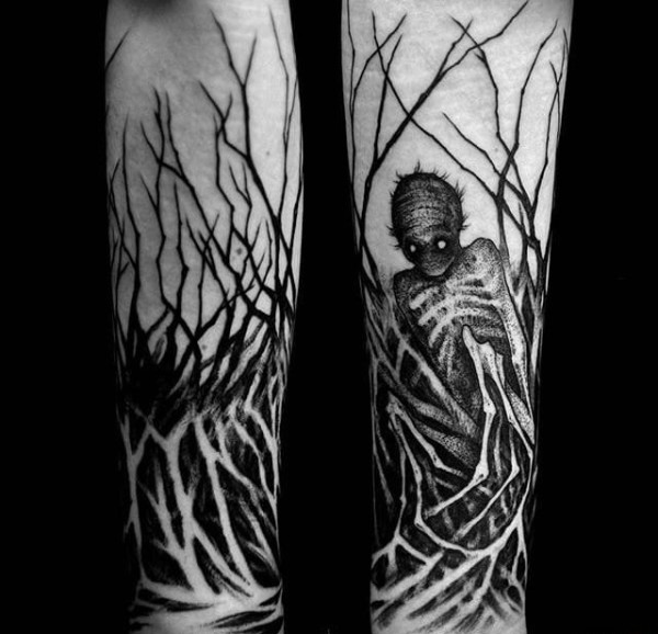 令人毛骨悚然的黑色生物和魔鬼纹身图案来自纹身师谢尔盖