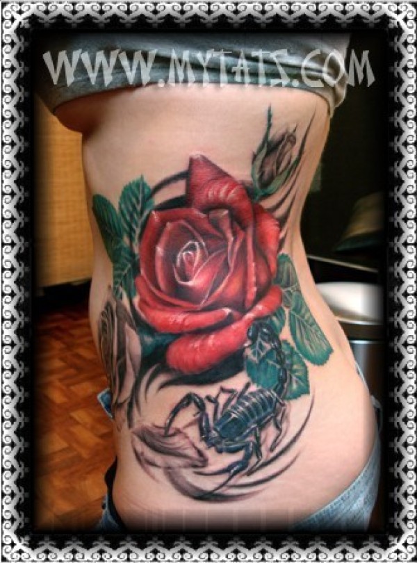 分享一款腰部时尚性感的蝶恋花纹身图案_腰部纹身图案大全_纹身图吧