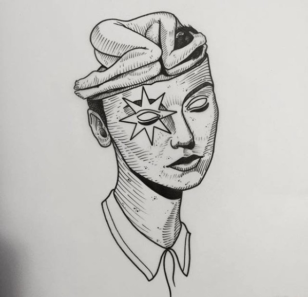 离奇和诡异的人物肖像纹身设计手稿来自纹身师丹尼尔