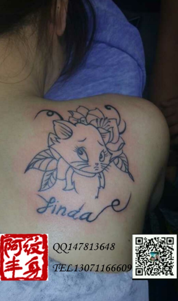 美女后肩小猫咪纹身/美女纹身图案/女士纹身/性感纹身/丰台纹身/阿丰纹身作品/最时尚纹身图