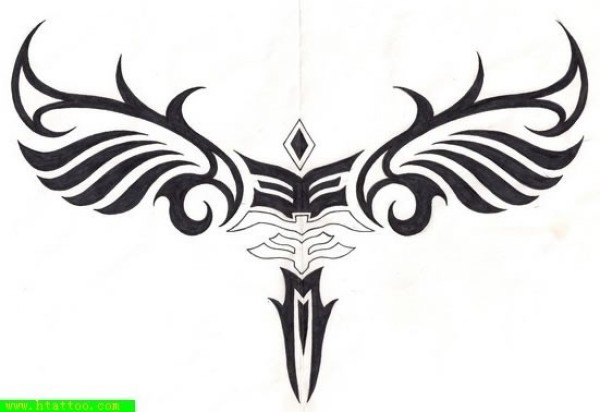 黑白色翅膀形状图腾刺青