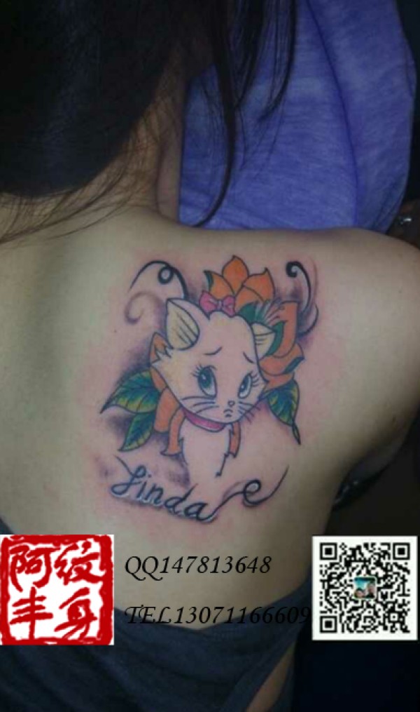 美女后肩小猫咪纹身/美女纹身图案/女士纹身/性感纹身/丰台纹身/阿丰纹身作品/最时尚纹身图