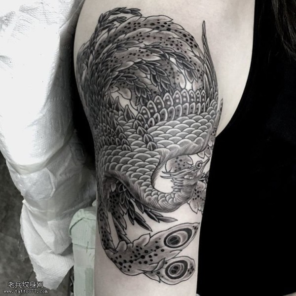 大臂黑灰精致的凤凰纹身图案