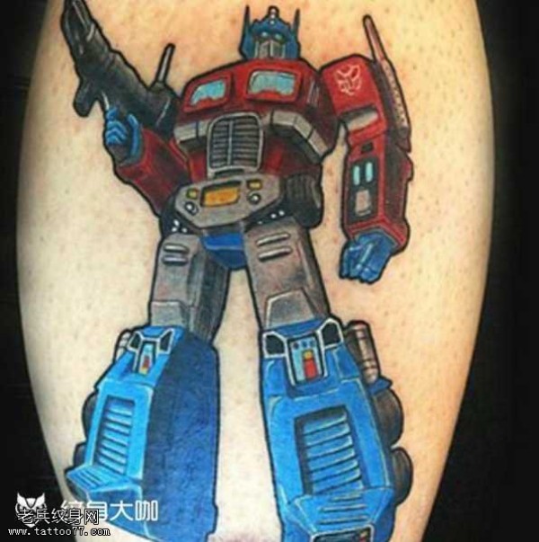 腿部变形金刚卡通彩色纹身图案
