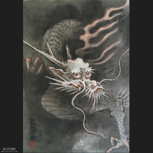 龙纹身手稿_一组老传统黑灰龙手稿纹身图案
