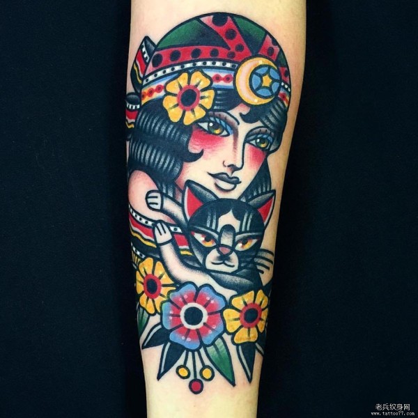 school花臂纹身--一组漂亮的school风格的花臂纹身图案作品