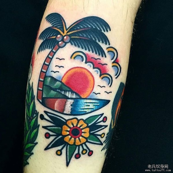 school花臂纹身--一组漂亮的school风格的花臂纹身图案作品