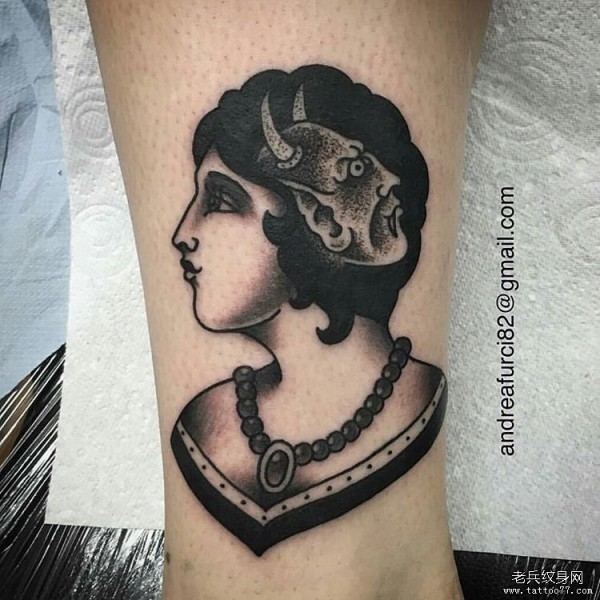 小腿黑灰欧美女郎纹身图案