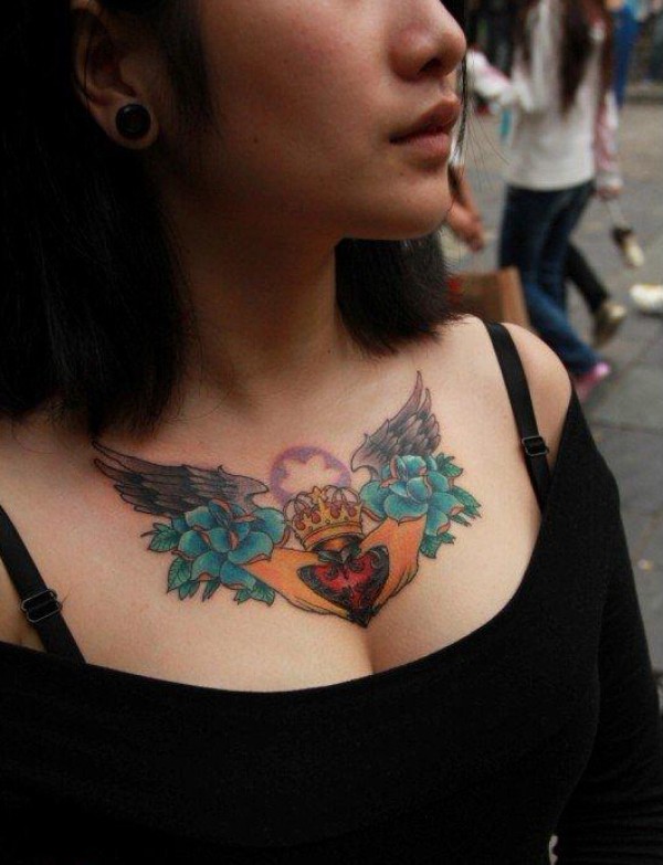 女性大花胸纹身_43张霸气漂亮的女性大花胸纹身图案作品