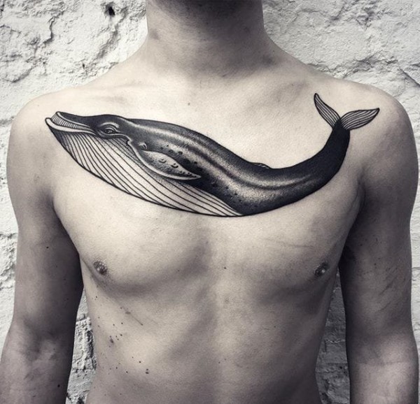 海洋里可爱的小动物纹身黑灰色鲸鱼纹身图案