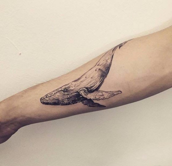 海洋里可爱的小动物纹身黑灰色鲸鱼纹身图案