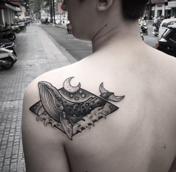 海洋里可爱的小动物纹身黑灰色鲸鱼纹身图案