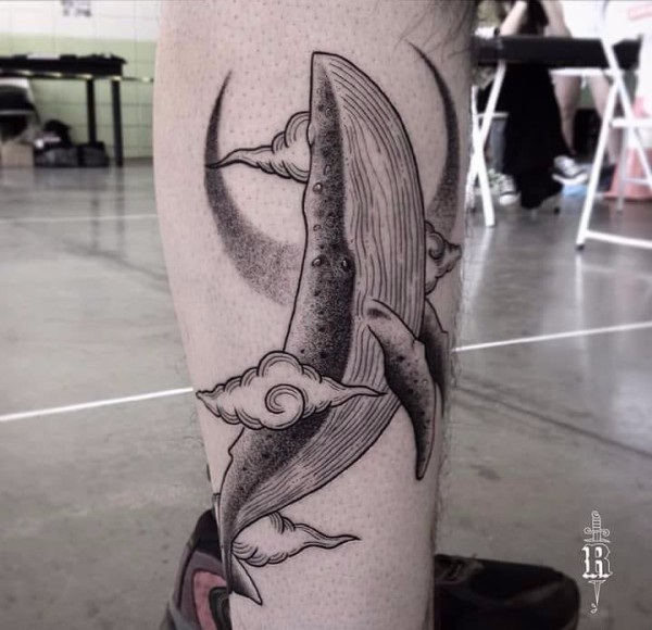 海洋里可爱的小动物纹身黑灰色鲸鱼纹身图案