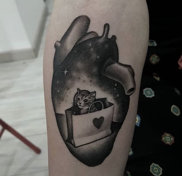 黑灰色场景机械心脏纹身图案来自于纹身师加布里