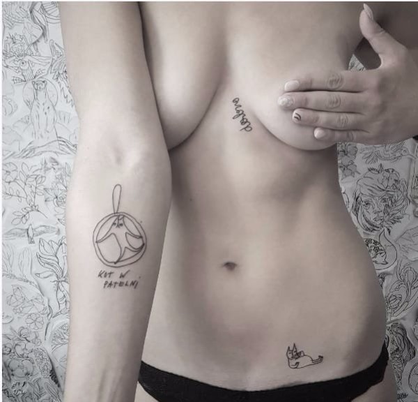 黑色的卡通动物和人物简易画纹身图案来自于纹身师比昂卡