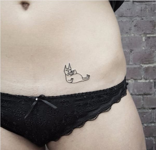 黑色的卡通动物和人物简易画纹身图案来自于纹身师比昂卡