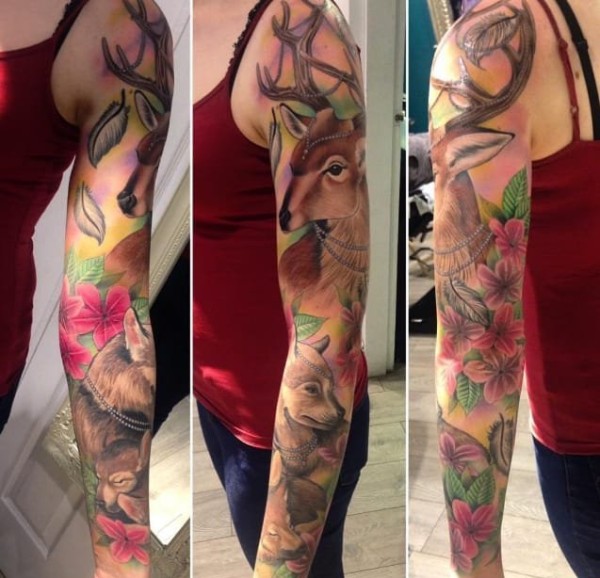迷人的植物彩虹色花卉纹身图案来自于纹身师艾米