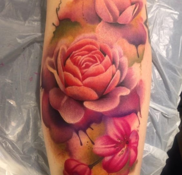 逼真的超现实主义花纹身图案来自纹身师莫拉莱斯