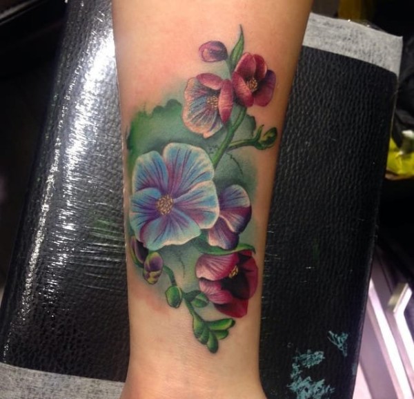 迷人的植物彩虹色花卉纹身图案来自于纹身师艾米