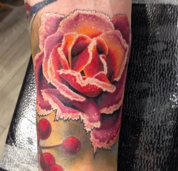 逼真的超现实主义花纹身图案来自纹身师莫拉莱斯