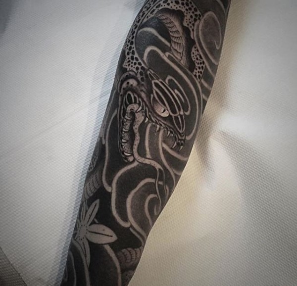 手臂莲花蛇纹身图案_臂部纹身图案大全_纹身图吧
