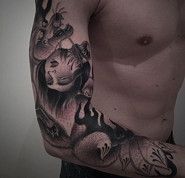 日本创意灵感纹身花臂纹身图案来自于纹身师卢波