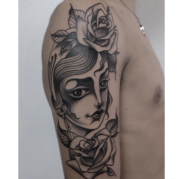 逼真的超现实主义花纹身图案来自纹身师莫拉莱斯