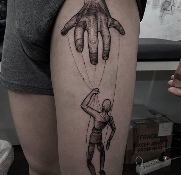 帅气的黑色纹身几何点刺纹身图案来自于纹身师阿瑟