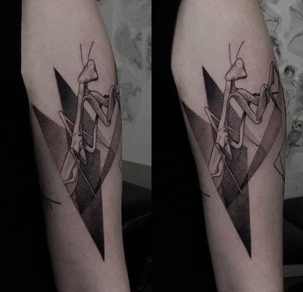帅气的黑色纹身几何点刺纹身图案来自于纹身师阿瑟