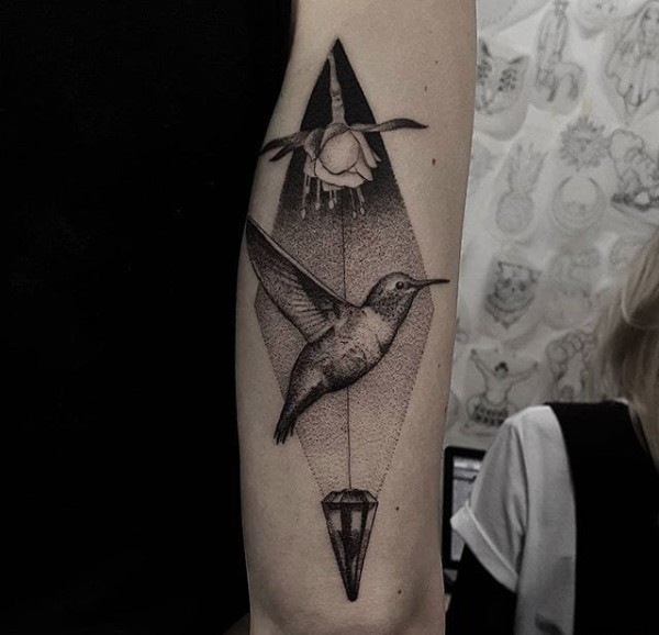 帅气的黑色纹身几何点刺纹身图案来自于纹身师阿瑟