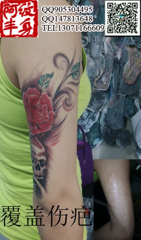 覆盖美女肩部伤疤纹身/美女纹身图案/女士纹身/性感纹身/丰台纹身/阿丰纹身作品/最时尚纹身图