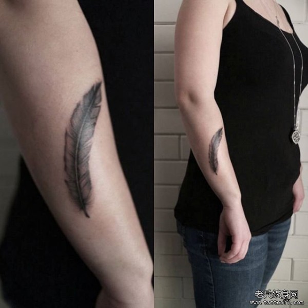 小臂小清新羽毛纹身图案