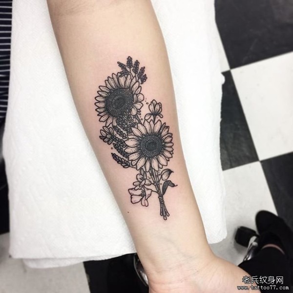 小臂小清新向日葵纹身图案